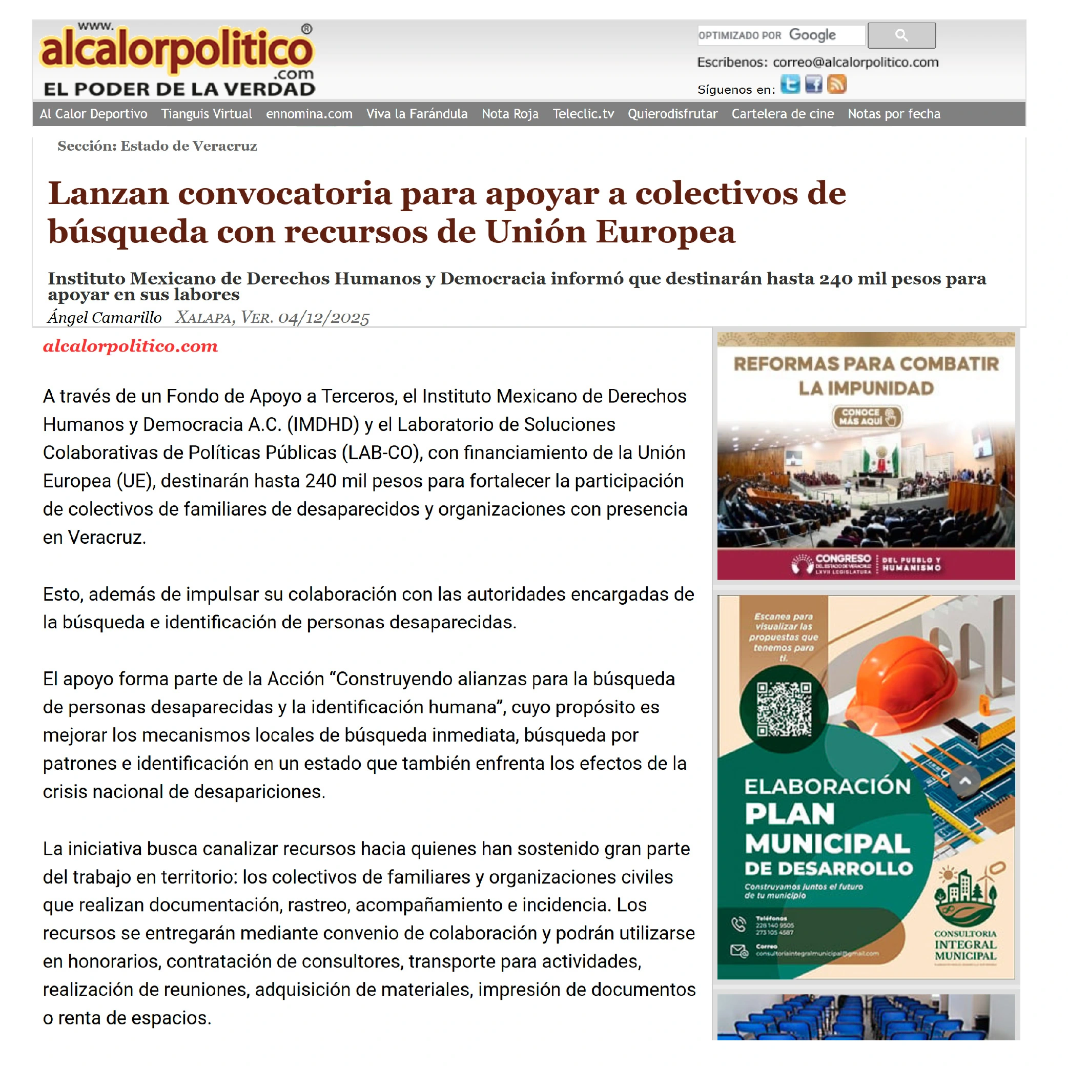 Lanzan Convocatoria para apoyar a colectivos de búsqueda con recursos de Unión Europea